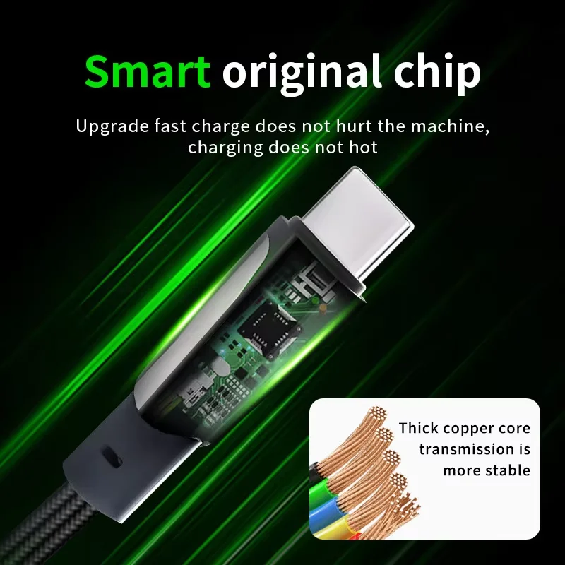 Our USB cable comes with a smart charging indicator that allows you to monitor the charging state in real-time. The breathing light color indicates different charging states: slow charging (green and slow flashing), fast charging (blue with a faster breathing rate as power increases), and fully charged (long bright green). The other end of the cable, even without connecting to a phone, will also display a light for convenience.